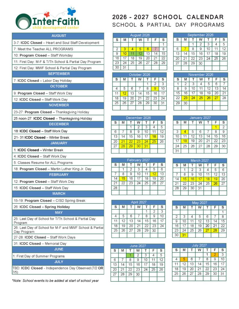 CLICK ON EACH CALENDAR TO ENLARGE OR DOWNLOAD 2025-2026 FULL DAY CALENDAR 2025-2026 PARTIAL & SCHOOL DAY CALENDAR 2026 - 2027 FULL DAY CALENDAR 2026 - 2027 PARTIAL & SCHOOL DAY CALENDAR
